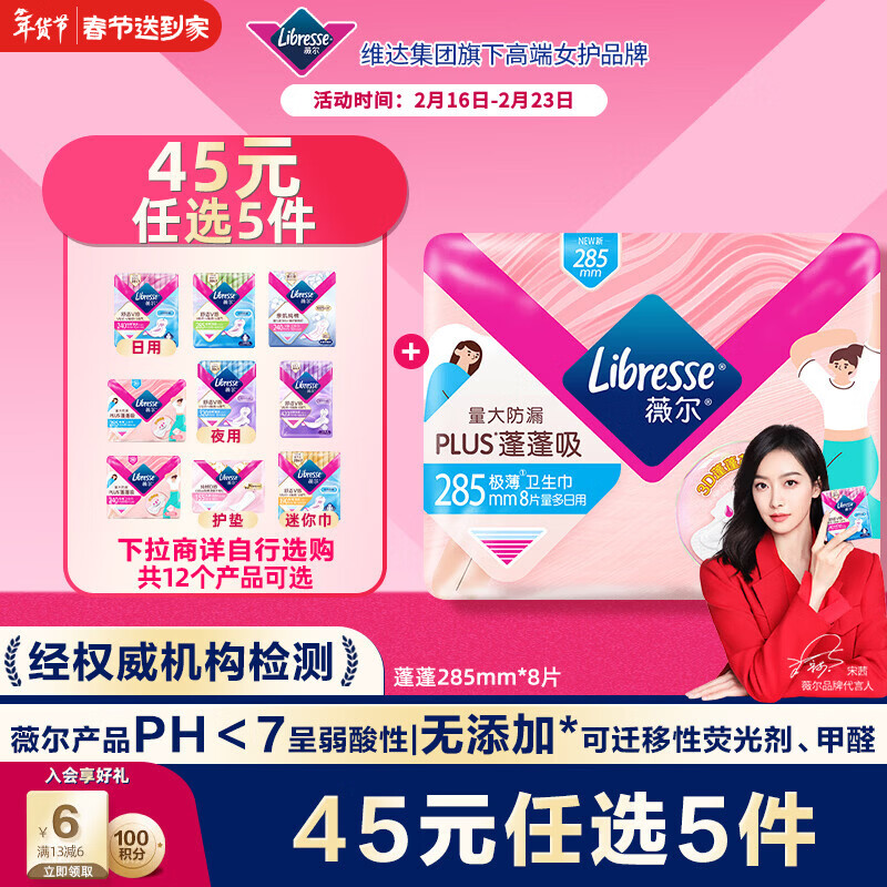 薇尔蓬蓬吸超薄贴合透气防漏285mm*8片加长日用卫生巾