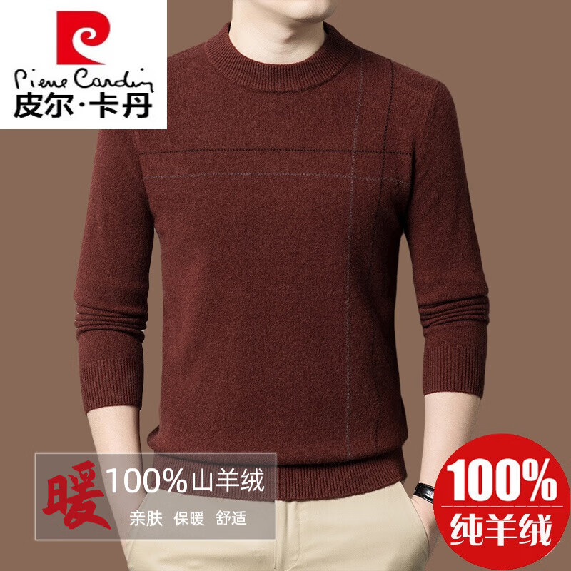 皮尔卡丹【名牌】100%纯羊绒毛衣男加厚秋冬男士羊绒衫内搭打底衫针织 驼色【藏835】 185/3XL【适合体重175-195斤】
