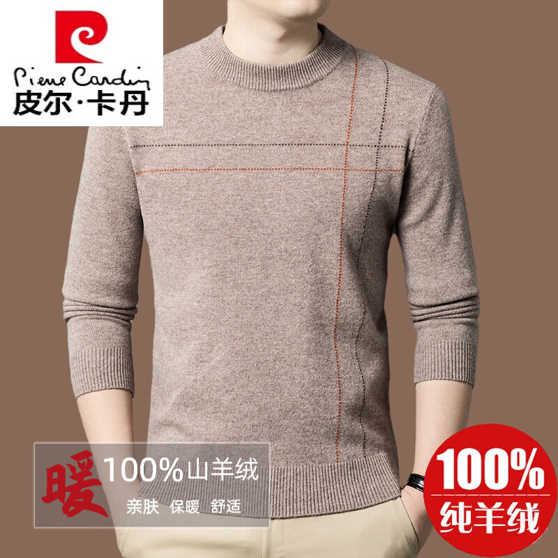 皮尔卡丹【名牌】100%纯羊绒毛衣男加厚秋冬男士羊绒衫内搭打底衫针织 驼色【发HG988】 165/M 【适合体重90-120斤】