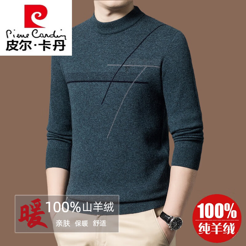 皮尔卡丹【名牌】100%纯羊绒毛衣男加厚秋冬男士羊绒衫内搭打底衫针织 深灰绿【藏835】 165/M 【适合体重90-120斤】