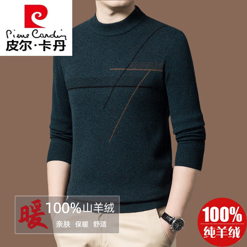 皮尔卡丹【名牌】100%纯羊绒毛衣男加厚秋冬男士羊绒衫内搭打底衫针织 深绿【润28067】 190/4XL【适合体重195-220斤】