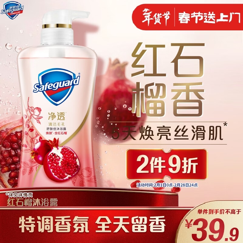 舒肤佳净透沐浴露红石榴香380g 含果酸持久留香 男女士通用