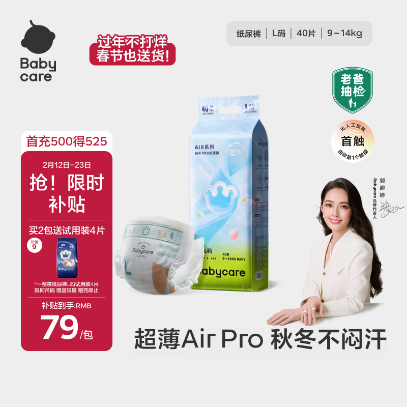 babycareAir pro纸尿裤大号L40片(9-14kg) 婴儿尿不湿夏日超薄透气