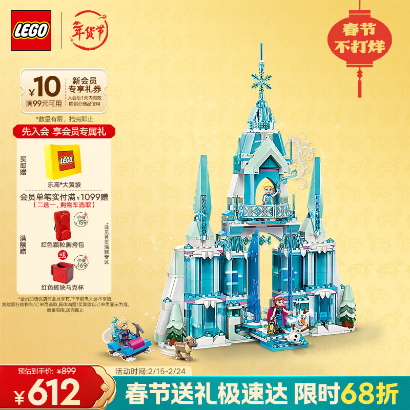 乐高(LEGO)积木迪士尼43244 艾莎冰雪宫殿城堡女孩儿童玩具生日情人节礼物