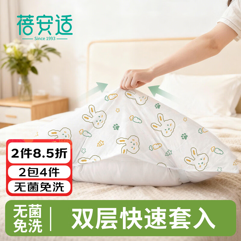 蓓安适一次性枕套【无菌】免洗旅行酒店隔脏加大枕巾枕头套旅游 4个装