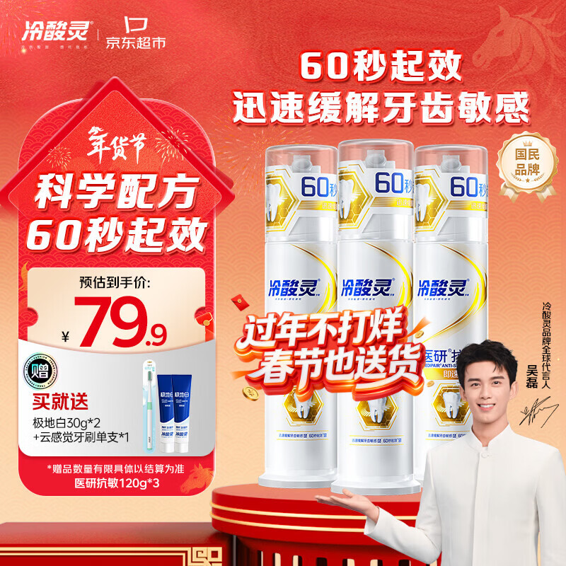 冷酸灵医研抗敏泵式牙膏抗敏配方缓解牙齿敏感3支装360g【吴磊推荐】