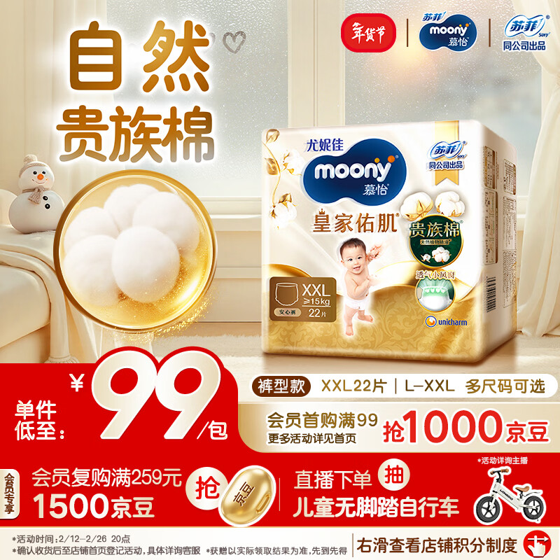 MOONY尤妮佳慕怡皇家佑肌拉拉裤XXL22(≥15kg)透气小风窗特惠装