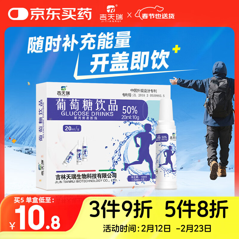 吉天瑞葡萄糖口服液补水液50%补充体力高原旅行高反运动饮料能量饮品5支