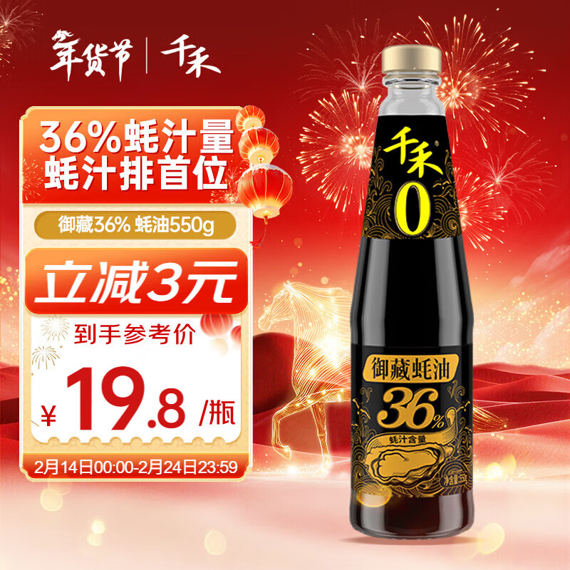 千禾御藏蚝油550g 【36%蚝汁量】0添加调料家用鲜味调味品