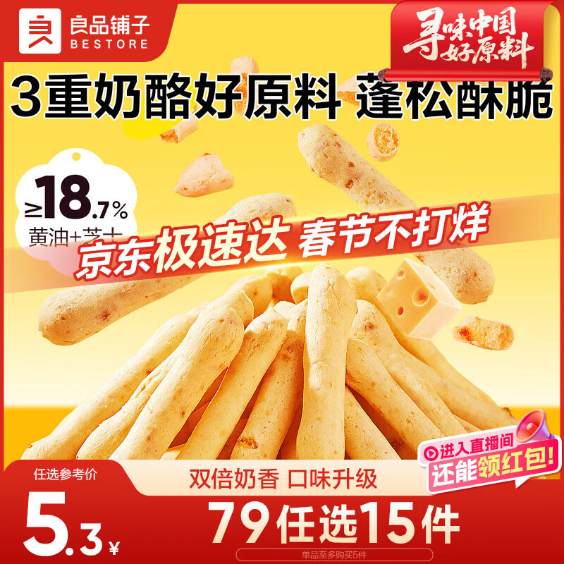 良品铺子芝士棒棒脆50g棒棒饼干手指饼干芝士味儿童休闲零食办公室小吃