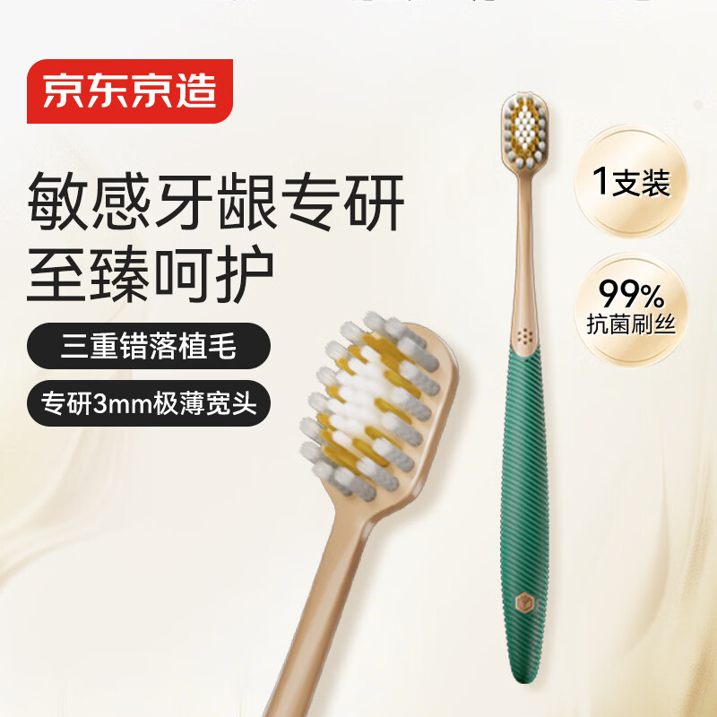 京东京造全效pro牙刷宽薄护龈 绿色1支装 宽头成人国产缓解敏感减少出血