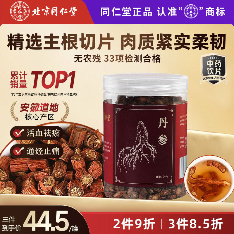 同仁堂(TRT)品牌北京同仁堂丹参240g 中药材草本丹参片可打丹参粉煲汤煮粥泡酒丹参中药饮片