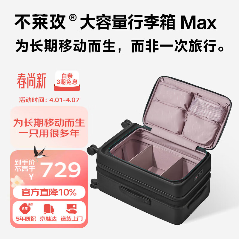 不莱玫行李箱女拉杆箱登机旅行箱男密码大容量侧开盖三代28英寸 黑色