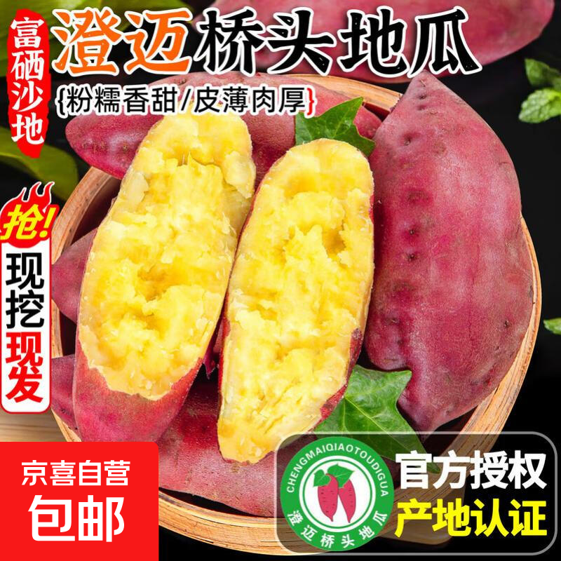正宗海南澄迈富硒桥头地瓜中秋礼盒板栗红薯超市蔬菜京东包邮 桥头地瓜5斤含箱 桥头地瓜(中大果)