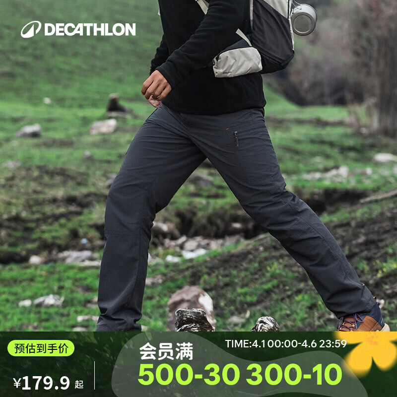 迪卡侬(DECATHLON)速干裤男女户外长裤徒步裤子快干登山透气弹力 TREK100 黑灰色-男款 【亚洲版型 裆部加深】 48