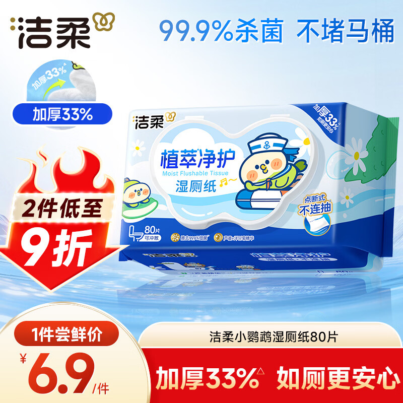 洁柔湿厕纸50抽*1包 擦除99.9%细菌抽取式湿巾私处卫生清洁湿巾