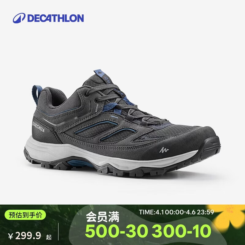 迪卡侬男士MH100低帮轻便透气户外山地防滑登山徒步鞋黑灰色43-2938501