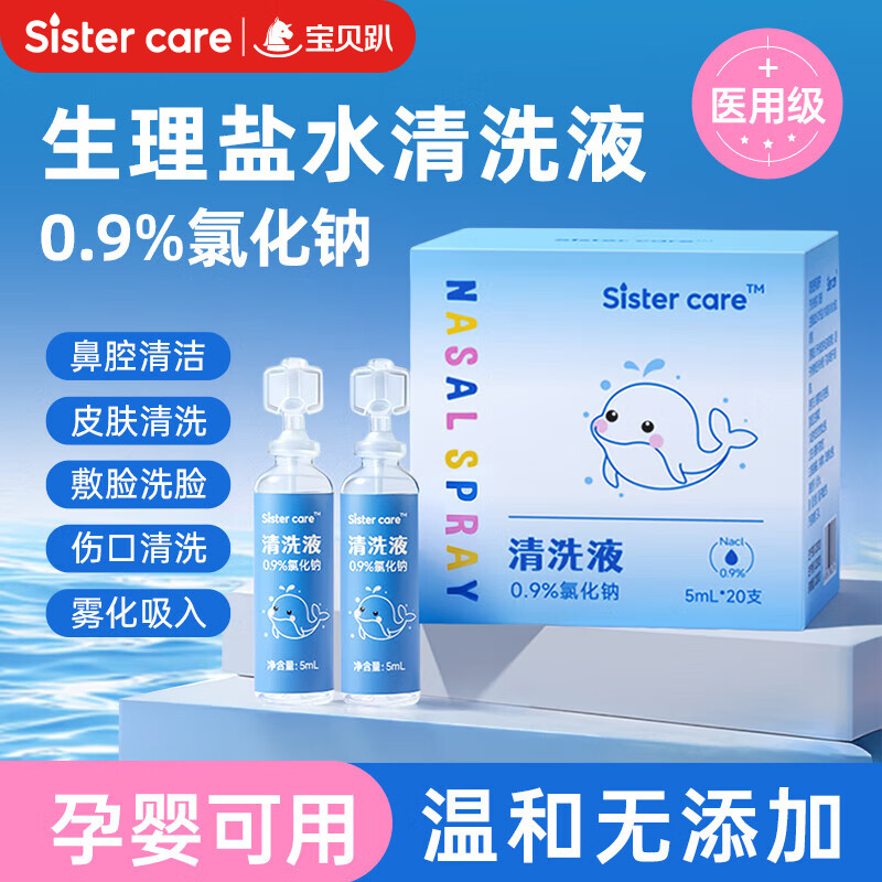 sister care婴儿生理盐水洗鼻海盐水鼻喷雾器儿童鼻塞鼻涕洗鼻水小支5mL20支