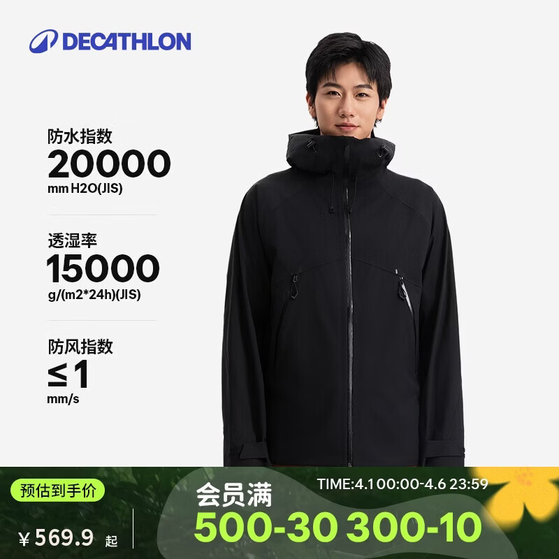 迪卡侬新款男士户外山地徒步防风防水MH500夹克亚洲版型黑色2XL-5455076