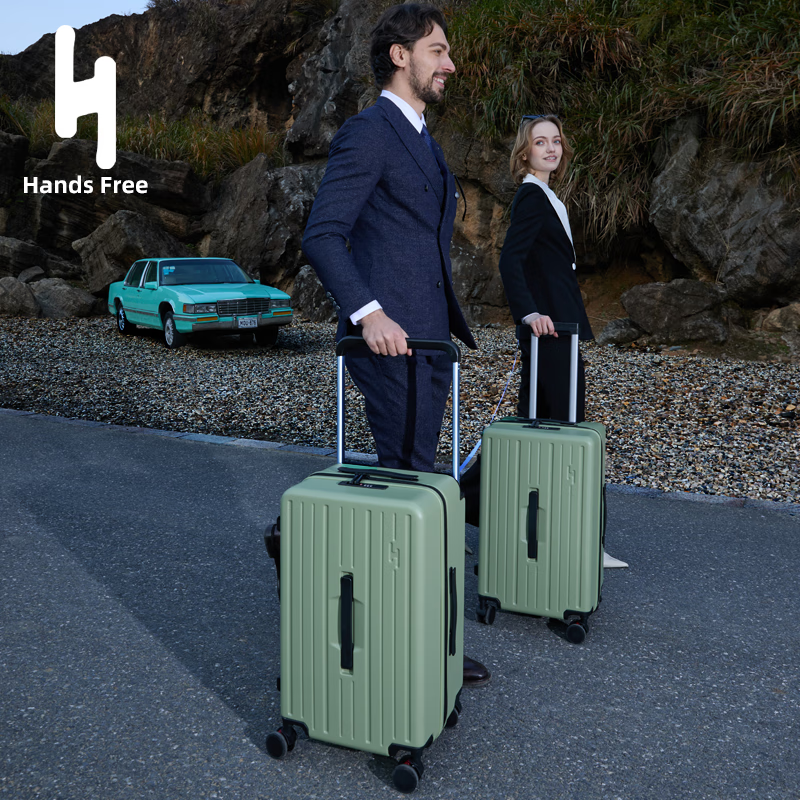 HANDS FREE宽拉杆行李箱双层防爆拉链旅行箱男女大容量拉杆箱三七开密码皮箱 抹茶绿604 28英寸 (一个月以上上学、工作)