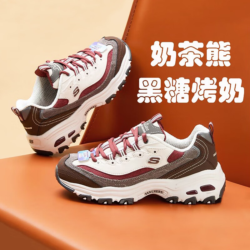 斯凯奇(Skechers)奶茶熊2代丨秋季新款休闲百搭女鞋运动鞋灯芯绒冲绳老爹鞋 【黑糖烤奶】/BUGY 42.5