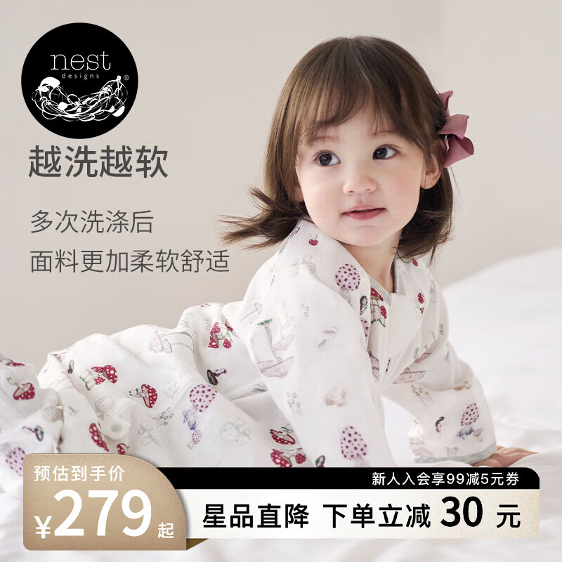 nest designs婴儿睡袋婴幼儿竹棉纱布宝宝睡袋用品分腿防踢被四季通用 蘑菇屋-双层(建议室温26-28℃) 130码(建议身高120-130cm)年龄7-8岁