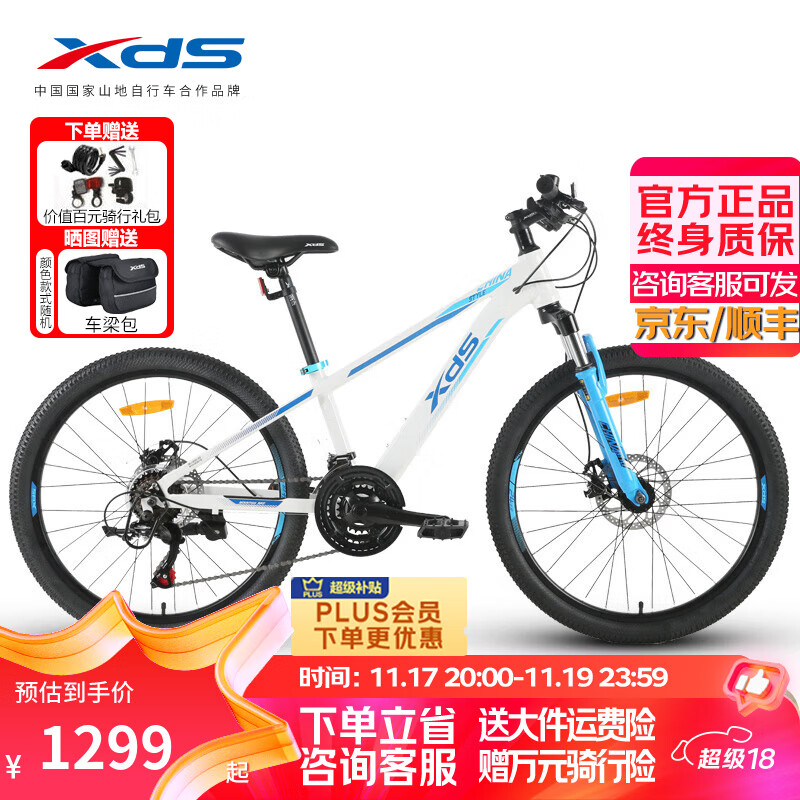 喜德盛(xds)青少年山地车中国风21速碟刹铝合金车架减震前叉男女学生通用单车 【24英寸】白蓝 135-165