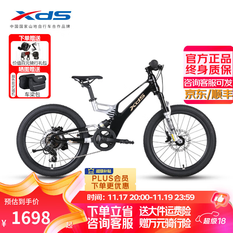 喜德盛青少年儿童自行车镁驰20寸镁合金车架7速油刹骑行运动童车代步车 耀光黑