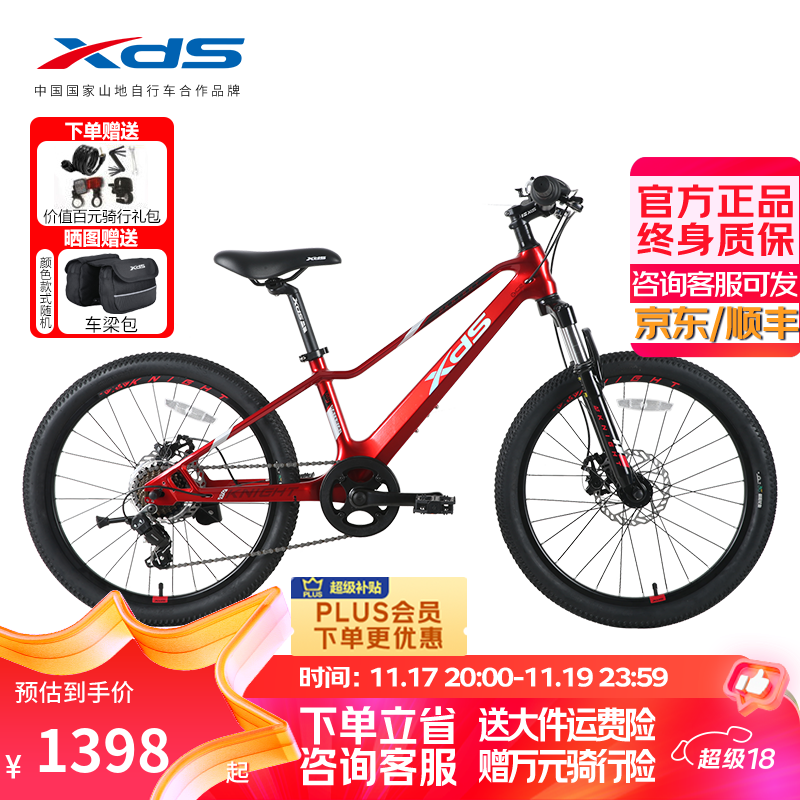 喜德盛儿童自行车镁骑士22寸禧玛诺7速机械碟刹男女通用车 金属红