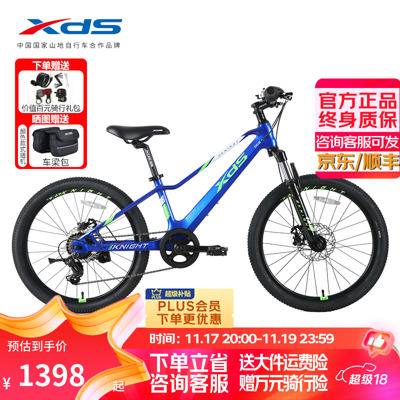 喜德盛儿童自行车镁骑士22寸禧玛诺7速机械碟刹男女通用车 宝蓝绿