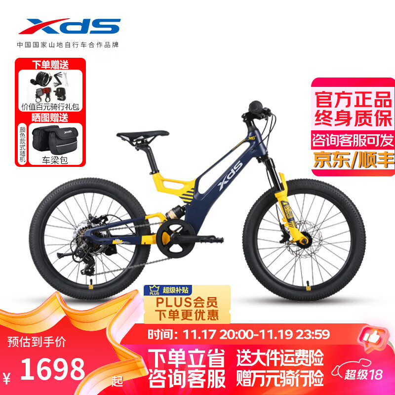 喜德盛青少年儿童自行车镁驰20寸镁合金车架7速油刹骑行运动童车代步车 极影黄