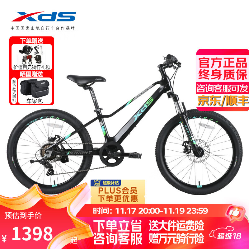 喜德盛儿童自行车镁骑士22寸禧玛诺7速机械碟刹男女通用车 黑青绿