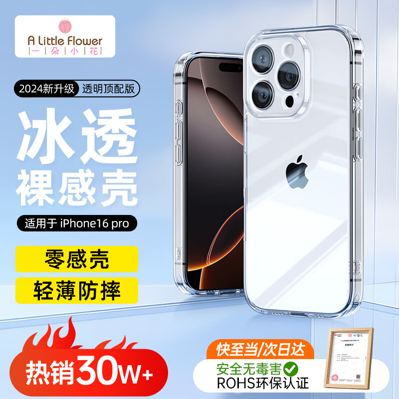 ALittleFlower适用苹果16pro手机壳iphone16pro保护套超薄防摔软壳透明镜头全包男女款简约