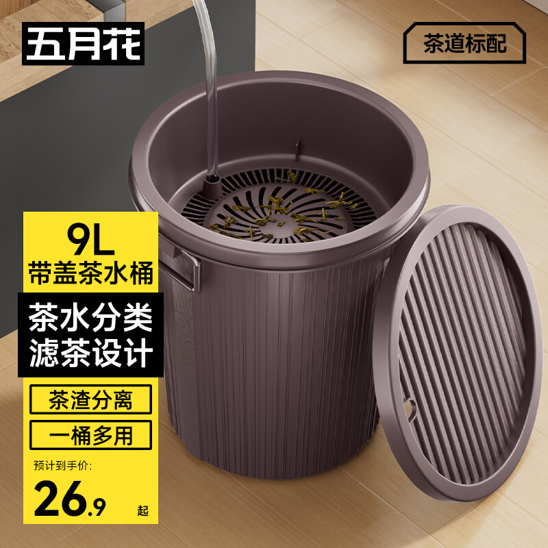 五月花茶水桶9L干湿分离茶渣桶加厚废水桶茶盘排水桶茶叶不带排水管