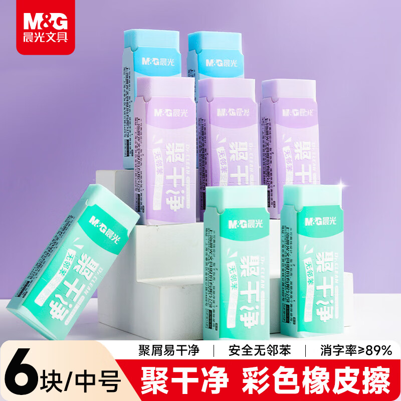 晨光(M&G)文具彩色聚干净橡皮擦 易擦无邻苯安全橡皮学生考试美术绘图素描橡皮中号6块装