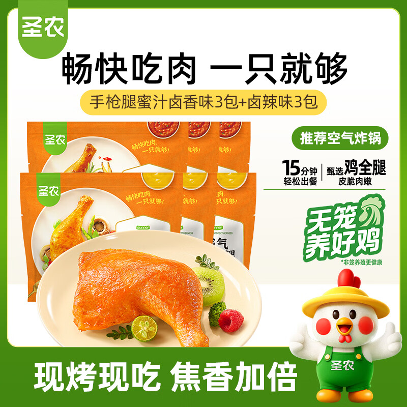 圣农手枪腿蜜汁3包卤辣3包烤全腿冷冻半成品大鸡腿180g*6包 源头直发