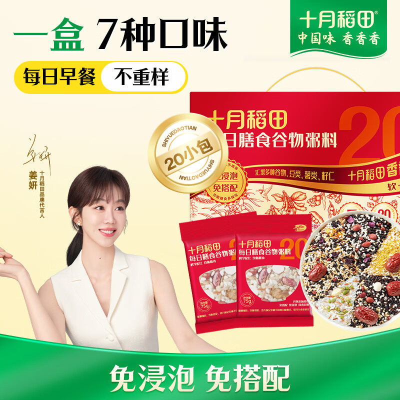 十月稻田 每日膳食谷物粥料 3斤(75g*20袋) 五谷杂粮礼盒 早餐粥米 团购