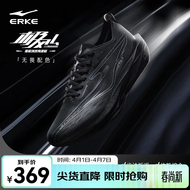 鸿星尔克极风4跑步鞋男专业运动鞋26春夏季新品竞速训练跑鞋体考体测男鞋 【无畏】正黑/碳灰 -男 41