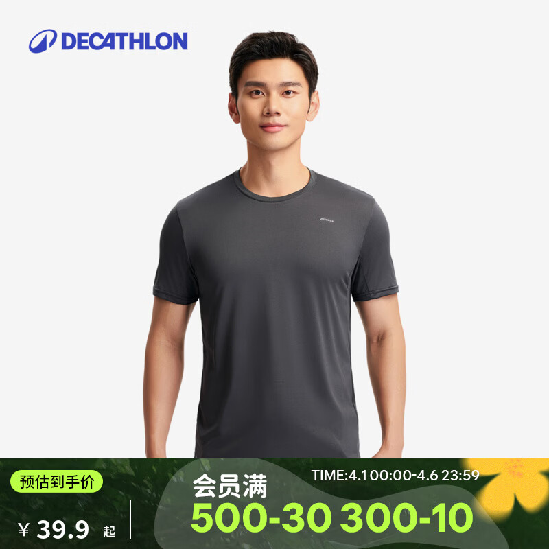 迪卡侬(DECATHLON)速干T恤男女运动户外健身宽松快干吸汗跑步短袖QUMM MH100 男款 深灰色 L