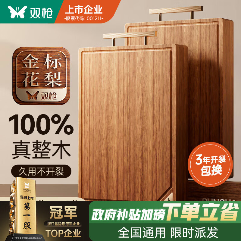 双枪金花梨木菜板整木砧板抗菌家用食品级切菜实木案板45*30*3cm