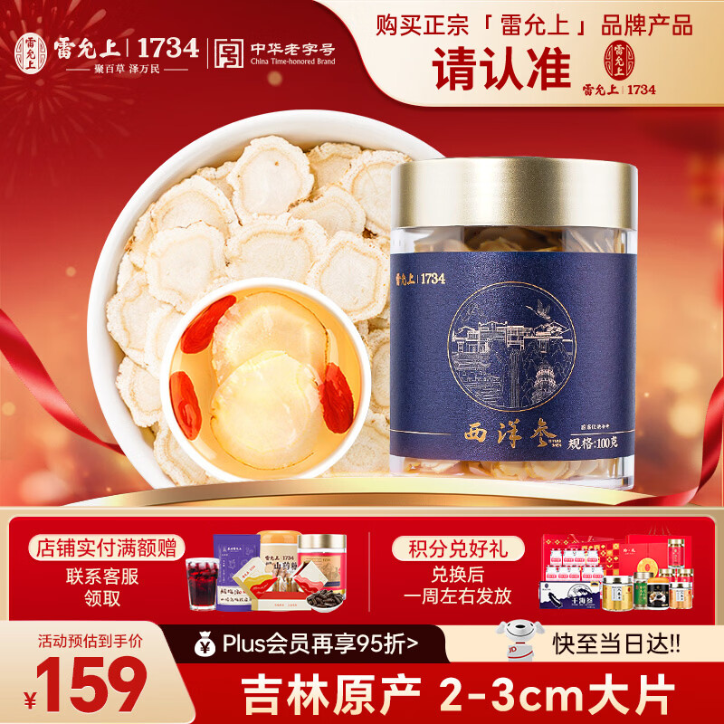 雷允上国产吉林长白山西洋参片100g一级薄圆片2-3cm泡水泡茶过节礼品