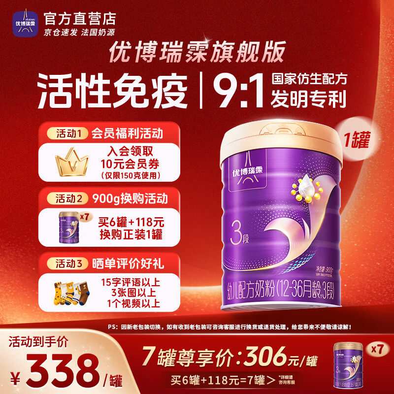 优博瑞霂【新国标】圣元优博瑞慕3段婴幼儿奶粉900g罐装法国进口12-36个月