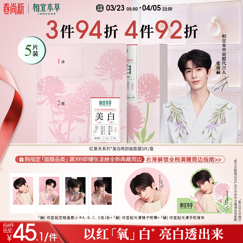 相宜本草【张凌赫同款】美白紧致面膜(两部曲)5片护肤品新老版本随机发货