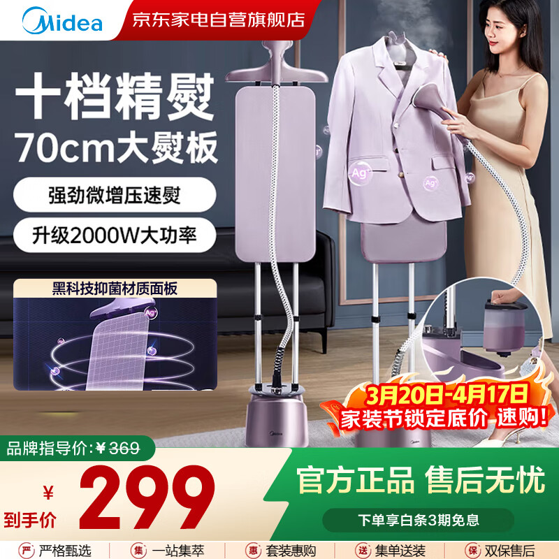 美的挂烫机立式【大蒸汽大功率2000W】10档精熨大熨板熨烫机家用蒸汽熨斗商用服装店专用神器 YGD20P6