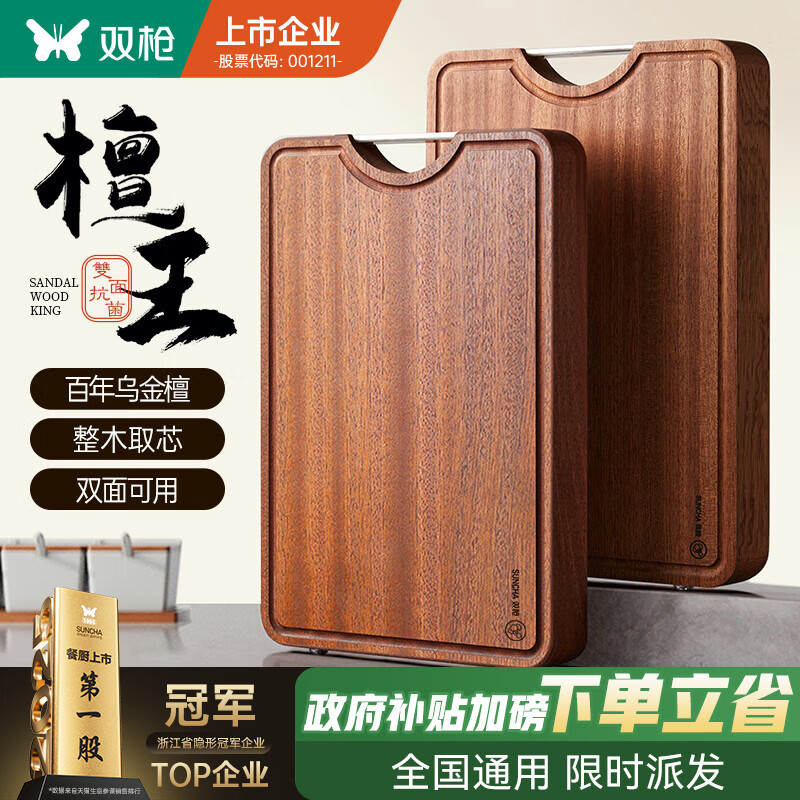 双枪乌金檀木整木菜板 百年龄砧板家用切菜案板抗菌实木菜板40*28*3