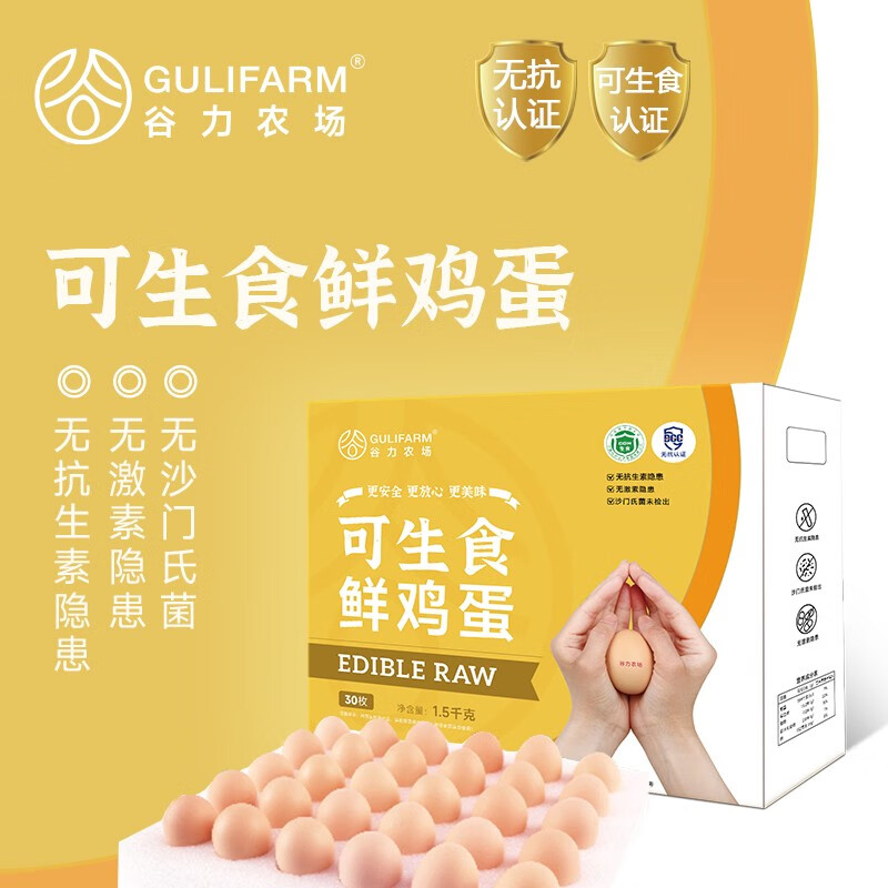 GULIFARM【供港品质】谷力农场 可生食鲜鸡蛋30枚 3斤 源头直发