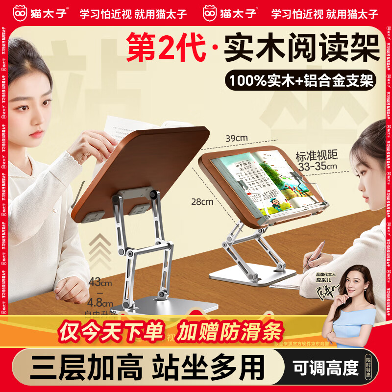 猫太子【100%天然橡木】实木阅读架儿童绘本可升降读书支架学生成人书本看书支架桌上床上书立阅读神器