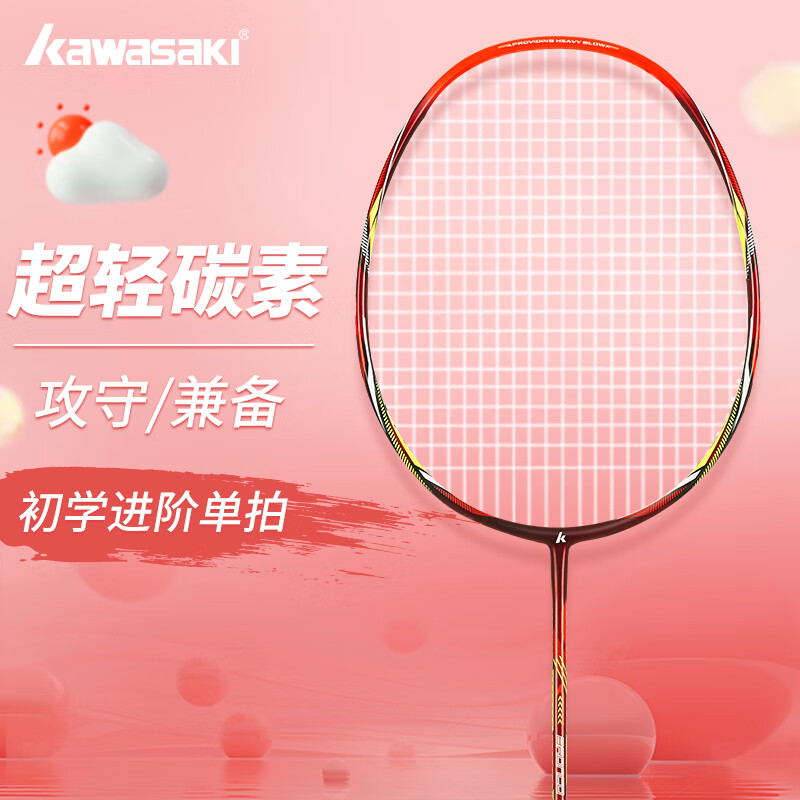 川崎(KAWASAKI) 羽毛球球拍单拍男女专业全碳素超轻进攻型羽毛拍单支羽毛球拍 【T230 全碳素单拍】红色