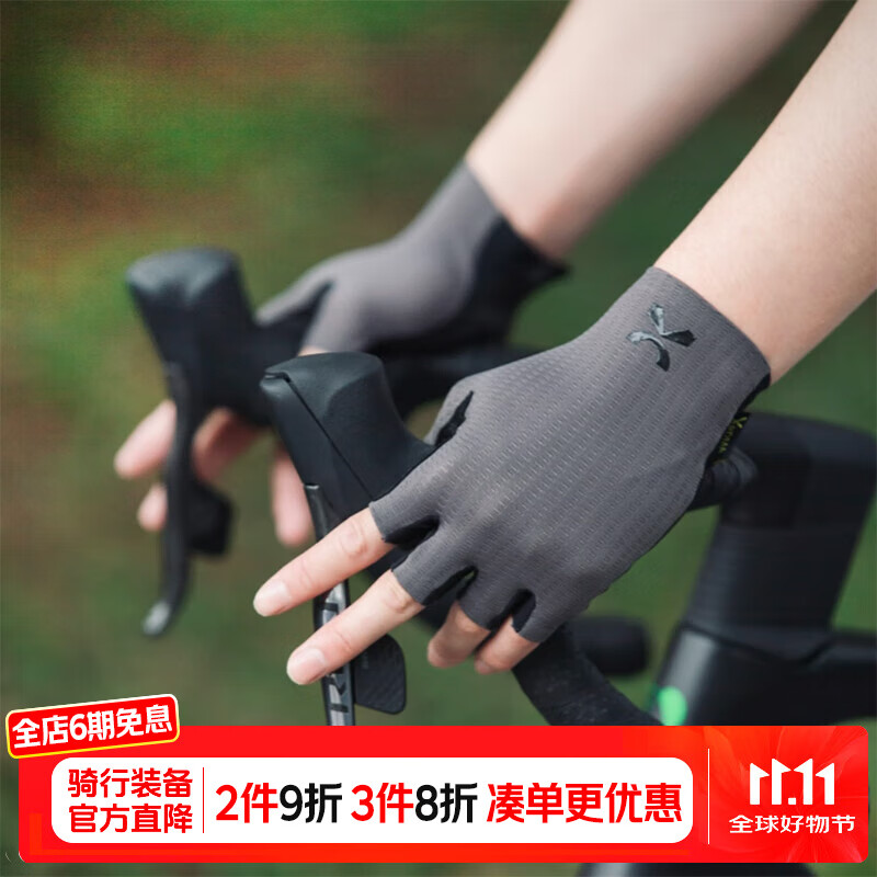 喜德盛公路车山地车骑行眼镜一体成型头盔专业短指手套自行车装备配件 LAB001短指手套 (暗岩灰)-L码
