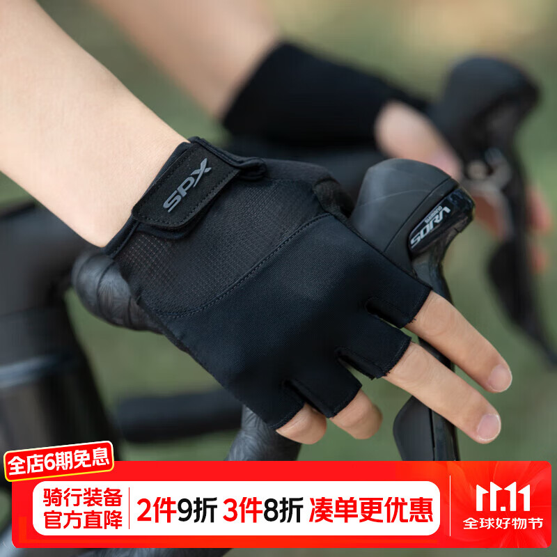 喜德盛公路车山地车骑行眼镜一体成型头盔专业短指手套自行车装备配件 LAB008短指手套 (黑色)-M码